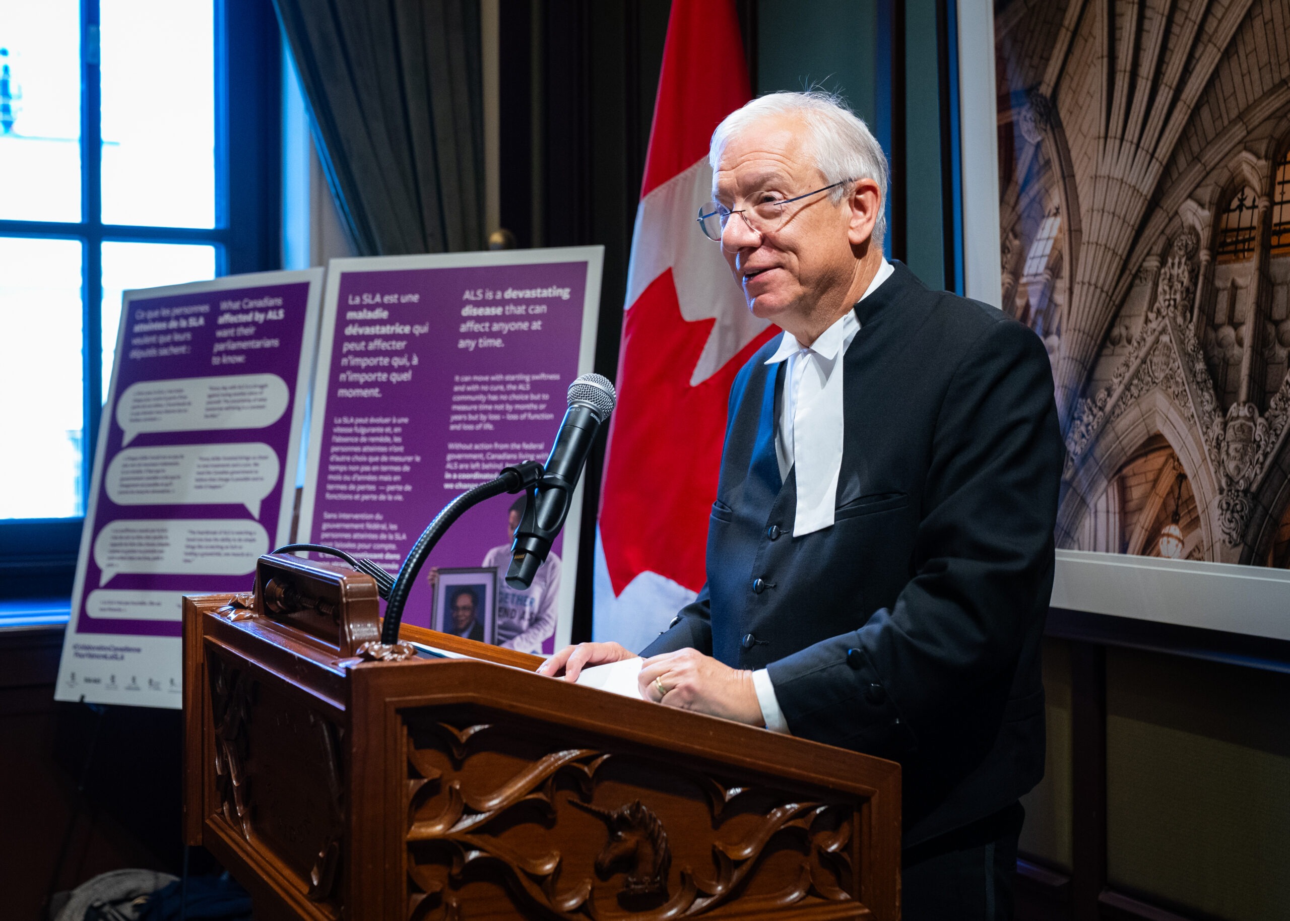 Le président de la Chambre, l’honorable Francis Scarpaleggia (Lac-Saint-Louis), a ouvert la réception en souhaitant la bienvenue à la communauté SLA sur la Colline du Parlement. Il a ensuite été rejoint par les coprésidents du Caucus sur la SLA, le député Francis Scarpaleggia (London Centre) et la député Marie-Hélène Gaudreau (Laurentides—Labelle), ainsi que par le député Todd Doherty (Cariboo—Prince George), qui ont tous exprimé leur soutien à la communauté SLA.