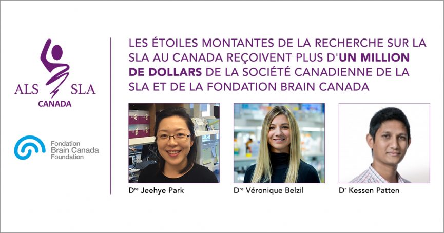 La générosité des Canadiens aide trois chercheurs en début de carrière à concentrer leurs efforts sur la SLA dans des laboratoires et des universités du pays. Les fonds de recherche, totalisant plus d’un million de dollars, ont été attribués par le programme de recherche de la Société canadienne de la SLA et par la Fondation Brain Canada. Ils proviennent des fonds recueillis lors de l’« Ice Bucket Challenge ».